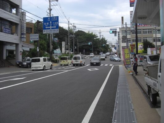 大学の前の広くなった道を振りかえる
