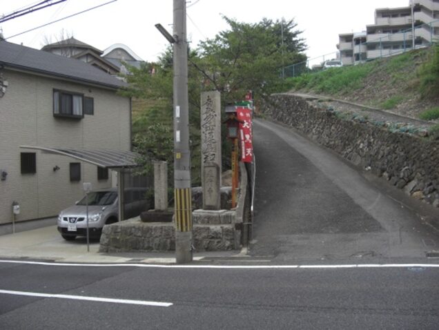 山科峠の道標 峠と言っても今は開発され舗装道で面影はない