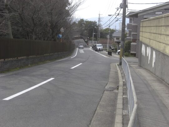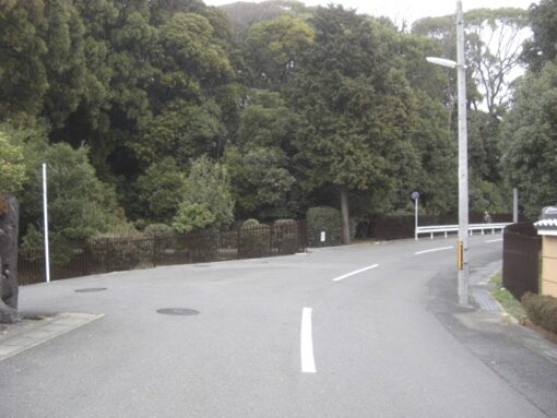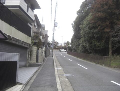 右の道を更に上る、道の両側は月見ヶ岡の高級住宅地