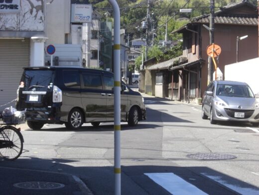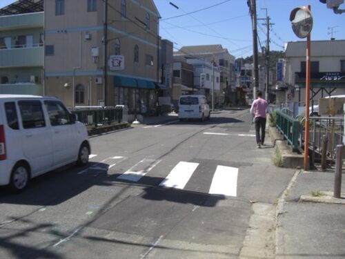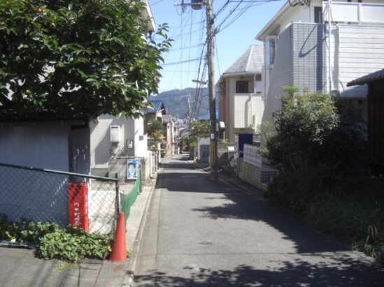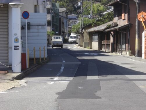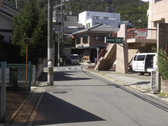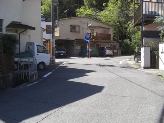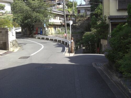 S字路の坂を上る道