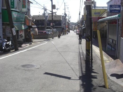 左に曲がって街道を進むと左に高島医院山科分院、暫くは若干曲がりながら南へ歩く