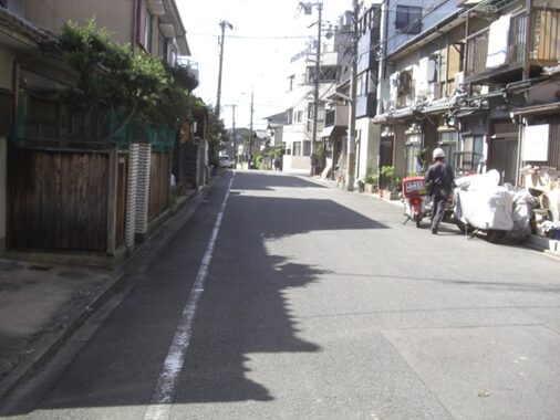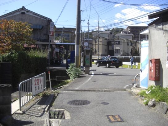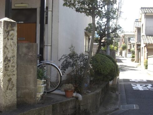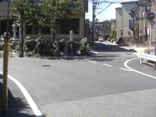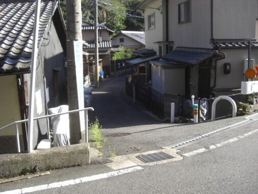 渋谷越え街道より、山科の五条別れ、旧東海道の分岐点から同じ道を暫く引き返し、元慶寺の南のT字路(渋谷越え資料参照)
