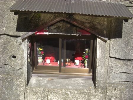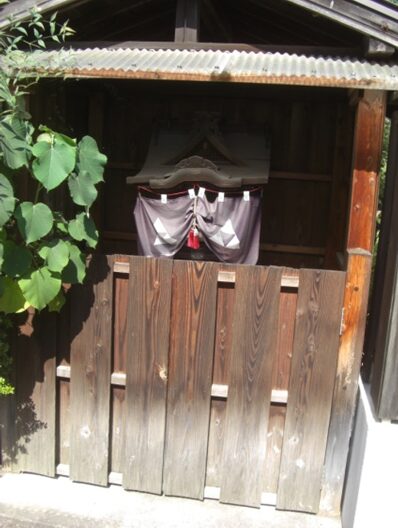 T字路の手前右ブロックの中に 祠