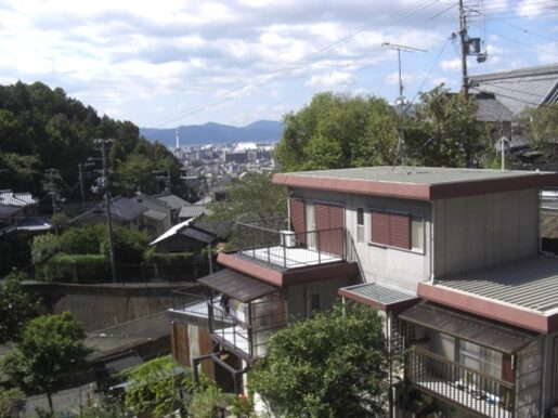 醍醐道と合流地点と、そこからの東の山科の眺め