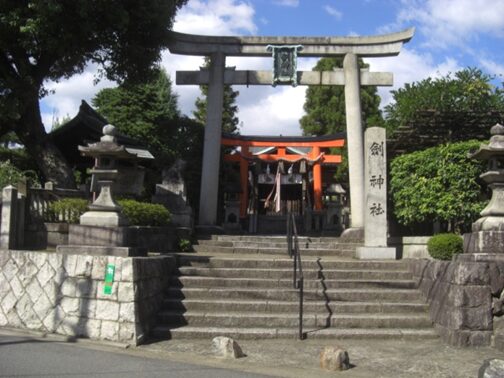 そこで少し右にいって剣神社へ