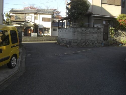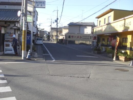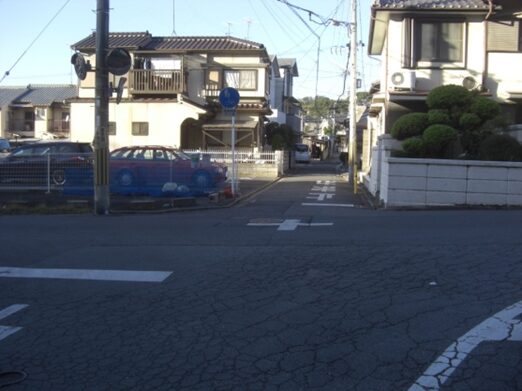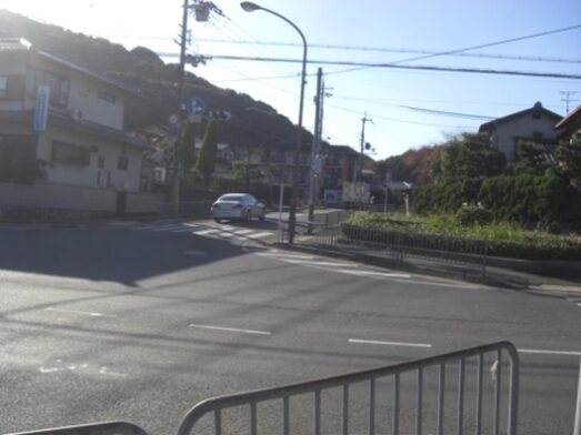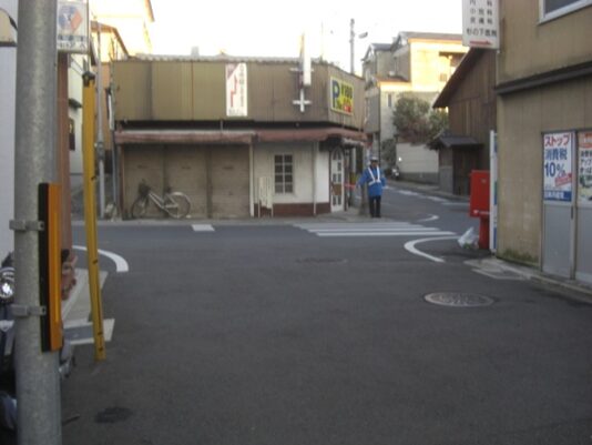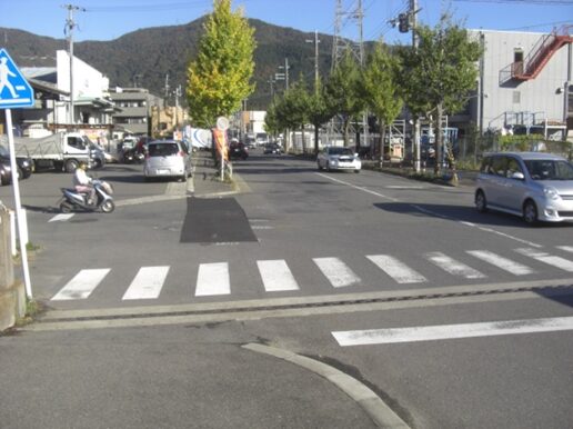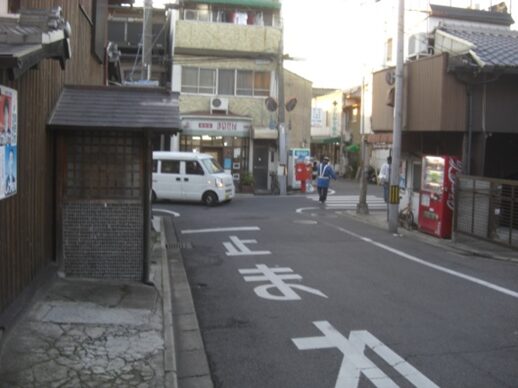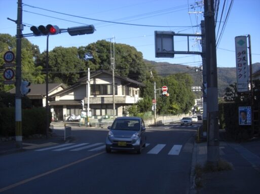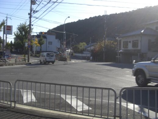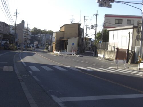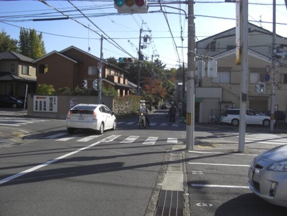 山科川から100mほど先で交差点に入る、街道は真っ直ぐ横断して西に進む