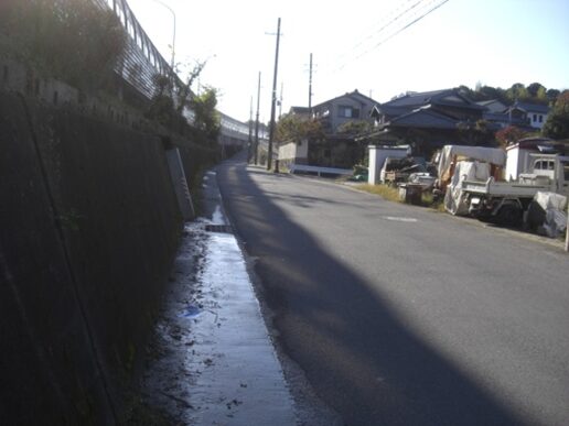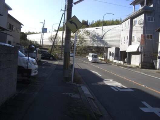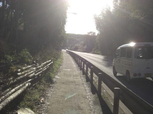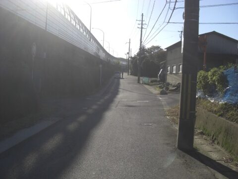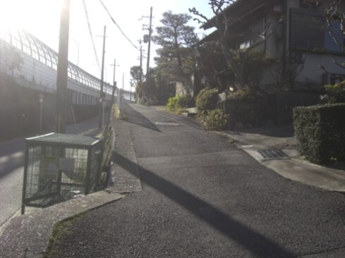 私は200mほどすすみ、左のトンネルを潜り名神の南側にでて右に折れました。真っ直ぐ進んだ道。この先でトンネルを左に潜る