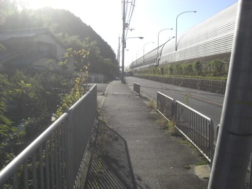 400mほど先で右の名神高速の高架下のトンネルを潜り、北側に出て再び名神を左に側道を進む、何方にしても名神により旧道は消失しています