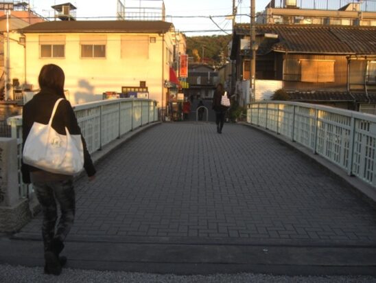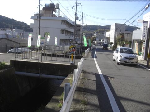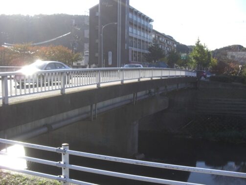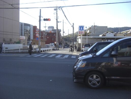 交差点の先で、琵琶湖疎水に架かる直違橋