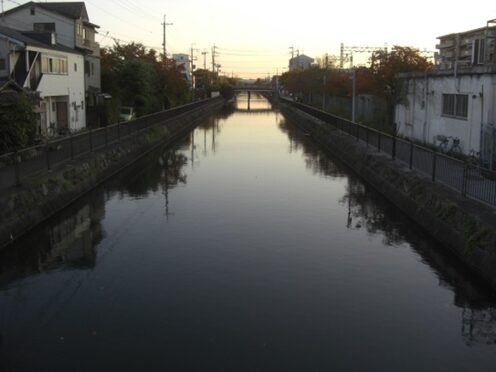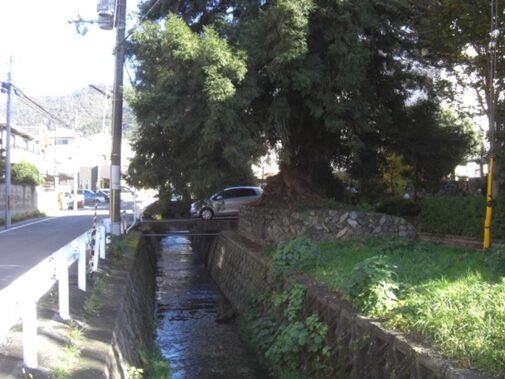 小野御霊町交差点の一筋北側に80mほど進むと、小野堰があるので、小野堰の橋を渡り左に沿って西に向かうこととした