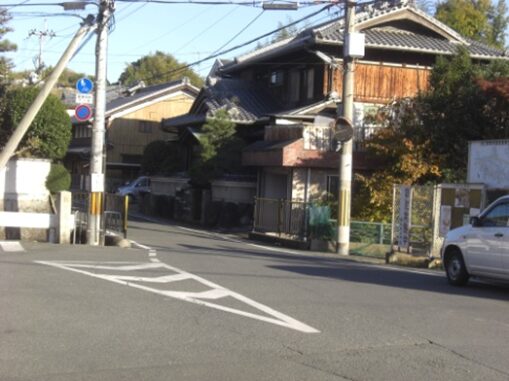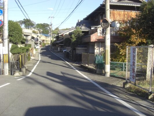 交差点を越えたすぐに左に入る旧道があります、この道は 小栗栖街道で、明智光秀が無念の最期を遂げた明智藪への街道。明智藪といっても現在は想像していたのとは開発されて面影はないが(小栗栖街道参照)