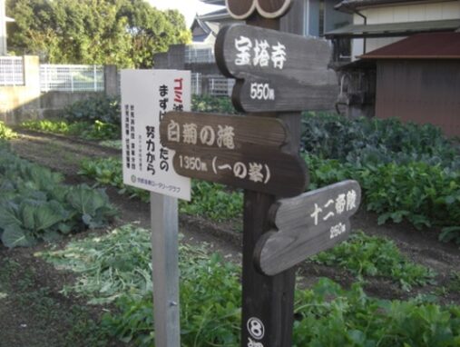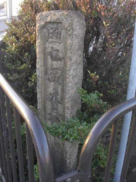 橋を渡った右角に 道標 「七面大天女 東南是ヨリ三町」