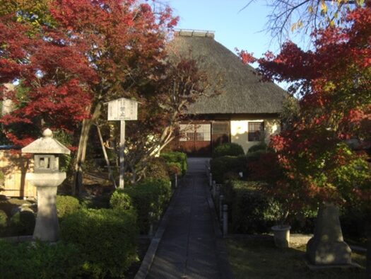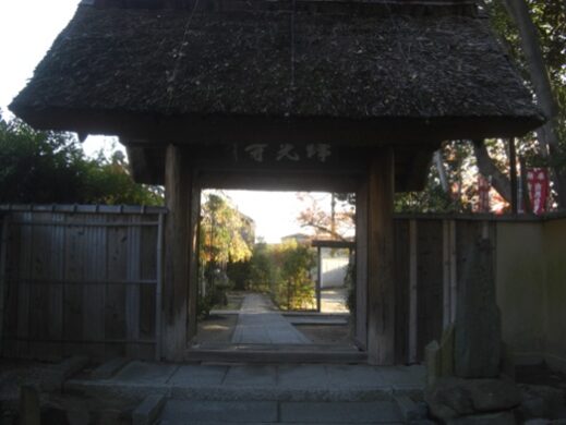 左に 日蓮宗深草山瑞光寺(元政庵)茅葺の山門を潜るとさらに大きな茅葺の屋根の 本堂 寛文元年(1661)の建立