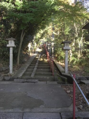 本堂前を通り、鎮守神の吉祥天を祀る裏手の七面山山頂へ