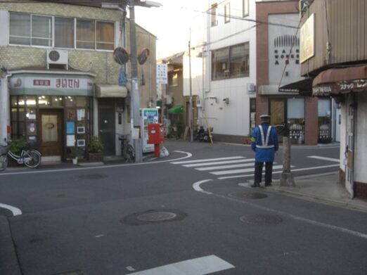 祠のすぐ先で少しずれた交差点に出る。左右(南北)の道は 伏見街道