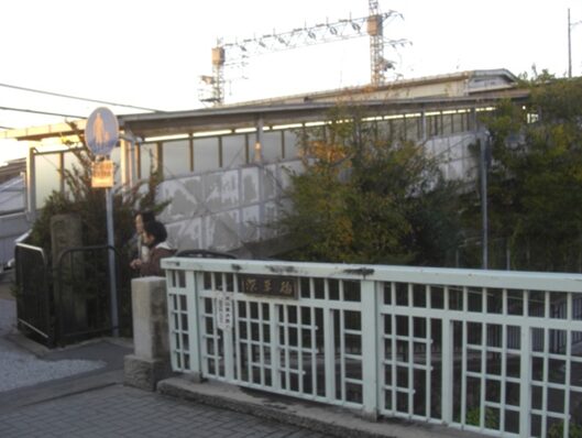 街道に戻りすぐ先で名神高速道を潜る 深草瓦町