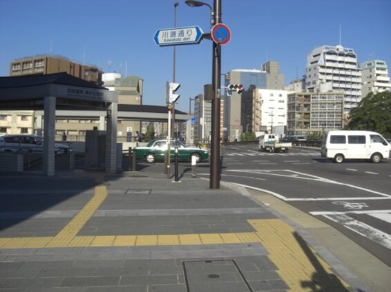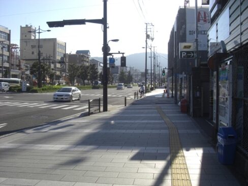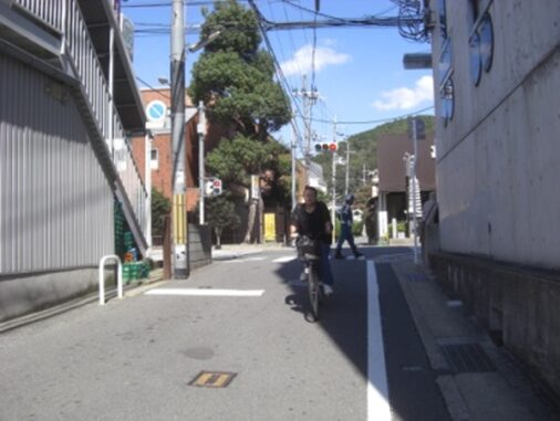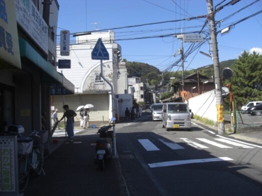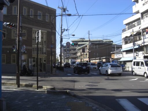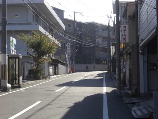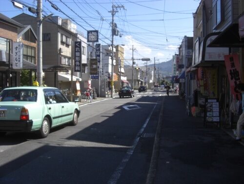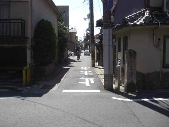 十字路を左に折れた先で、三条通りの五条別れ交差点に出る