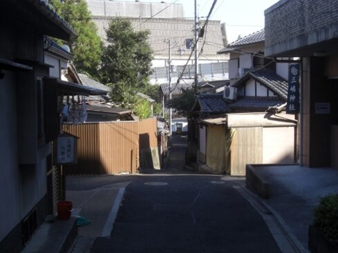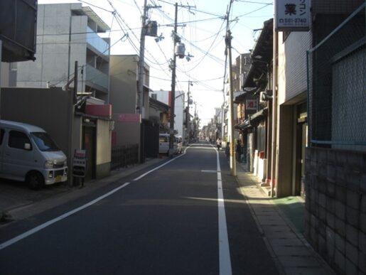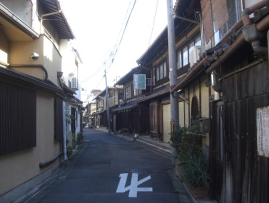 五条大橋から五条通りを東へ、南北の問屋街通りから鞘町通りを越えた三筋目の道を右に入る