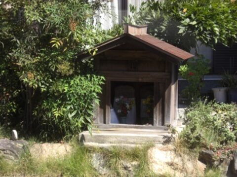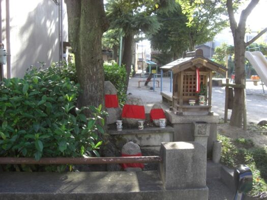 左に曲がらず少し真っ直ぐ行った左公園角に 祠とお地蔵さん