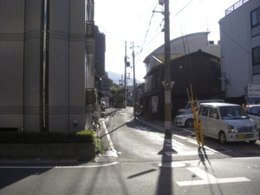 交差点左の道筋、東山五条交差点への道
