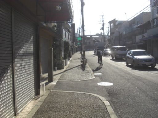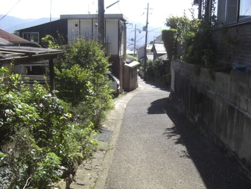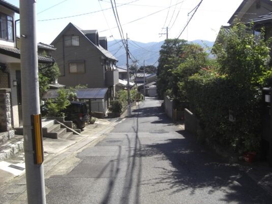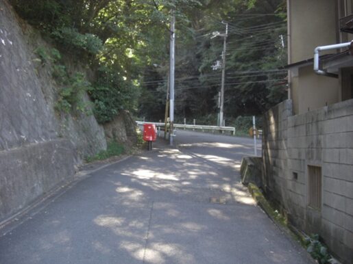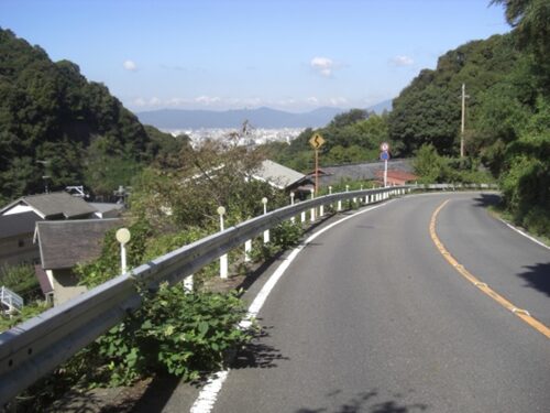 少し蛇行している坂道です