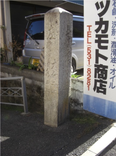 右に折れて次の十字路右角に 道標  その十字路を左に折れる