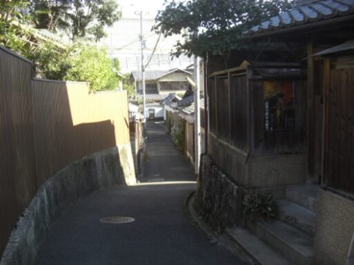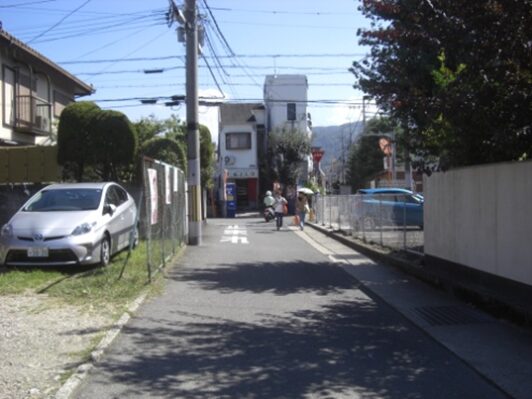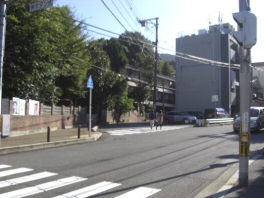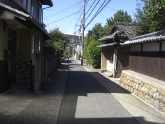 街道に戻り京都女子大学を過ぎた交差点で道は分岐する。左斜めに入る道が旧道