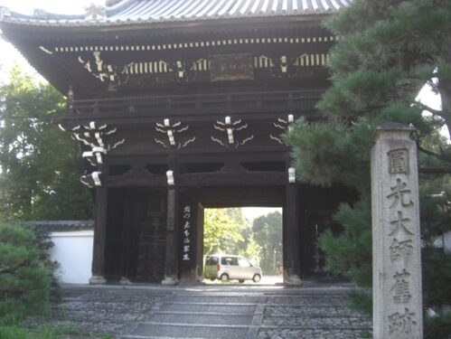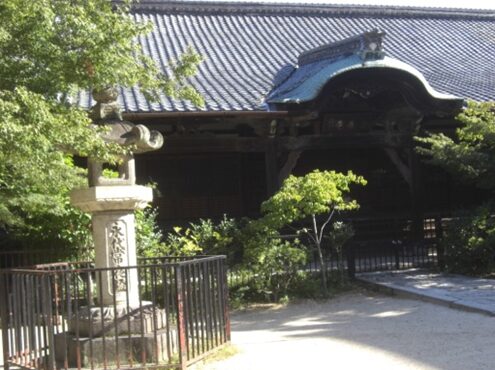 本堂の左前に「人皇六拾五代花山院法皇御落飾道場」の石柱