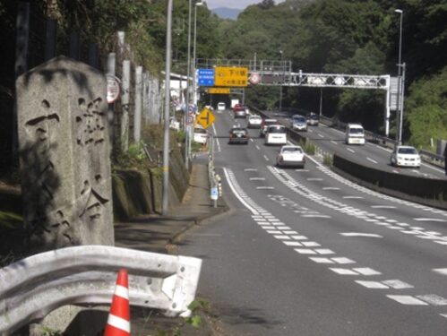 国道1号線にでて前述の、竹藪の間を左に下る細い道に挑戦する。旧道かどうか分からないが