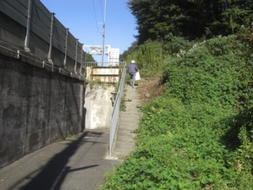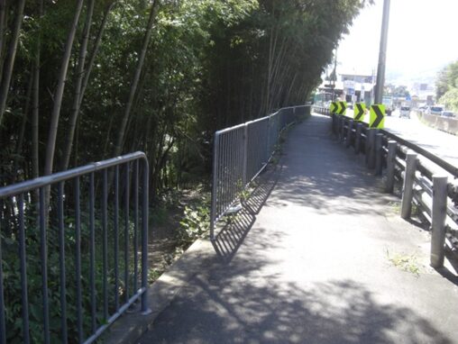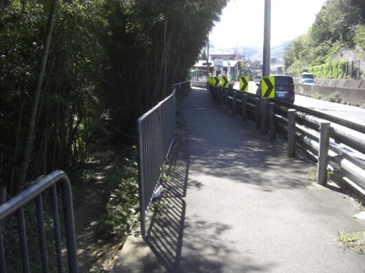 この地下をJR東海道線が走っている左に竹藪があり柵が切れている、ここが旧道跡の道か