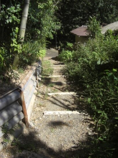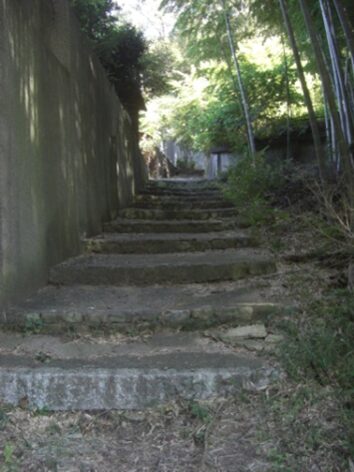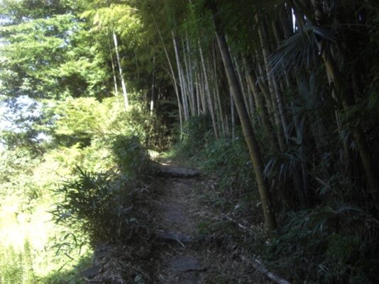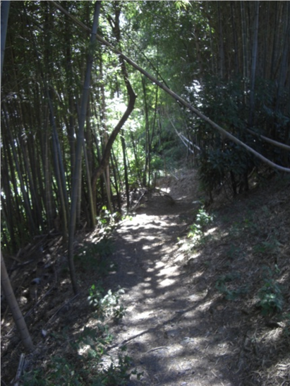 潜って擁壁の坂を上り、竹藪の中を進みます