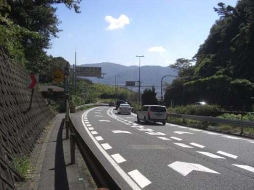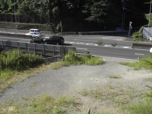 竹藪の坂より国道を振り返る、