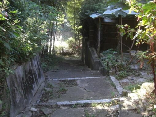 石段を上って振り返ると、今登ってきた道は私有地のようだが、この道を上らければ道がないし、旧道らしくていい道だ石段を上り突き当たるので右に折れる