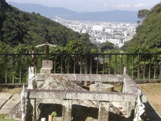 要石と京都市街地が眺められる
