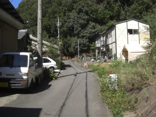 左に入ると旧道が残り、数軒の家が建っている