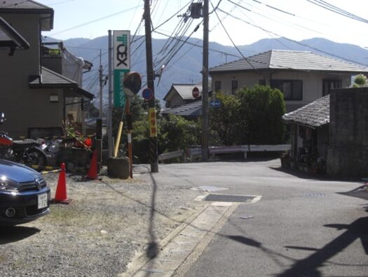 旧道の左斜めに入る道