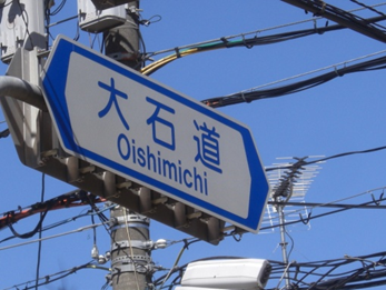 交差点に大石道と渋谷街道の標示