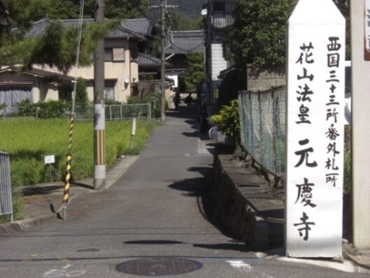 桓武天皇の孫、遍照により、貞観十一年(869)に崋山寺を創建、その後、元慶元年(877)に清和天皇の勅願寺となり、元慶寺と改めたが応仁の乱で寺が焼失小さな寺域となった。花山天皇が寛和二年(986)に出家したのがこの寺ですたれていた西国霊場を復活させた