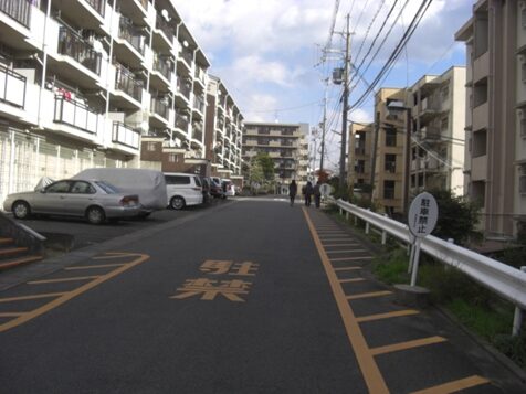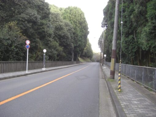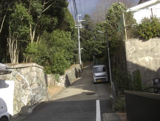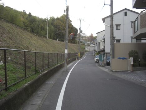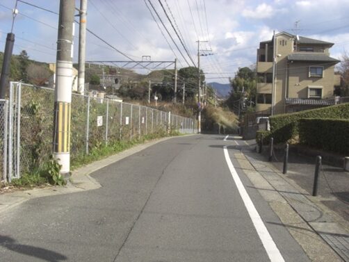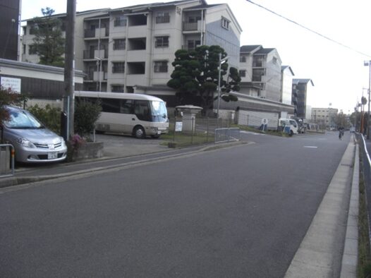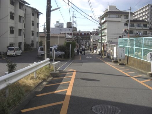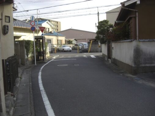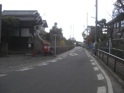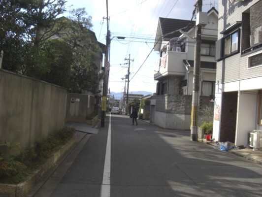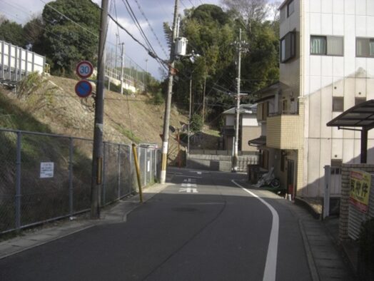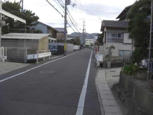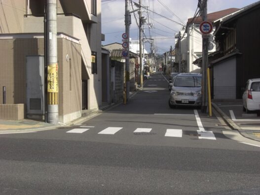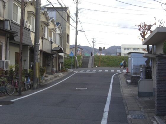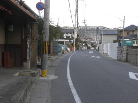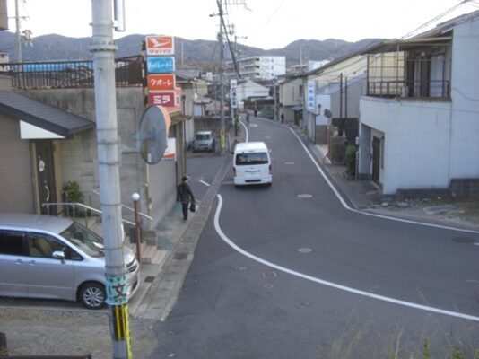 市営住宅内の道を通り真っ直ぐ東へ国道24号線にでて横断する
