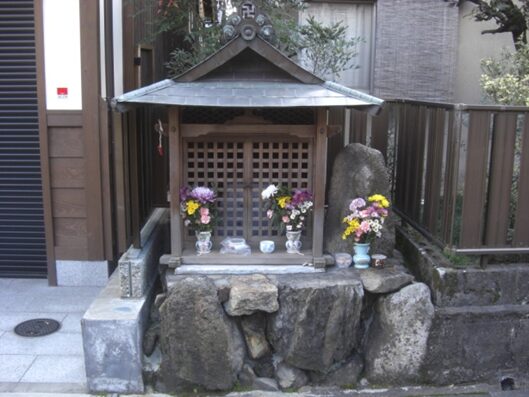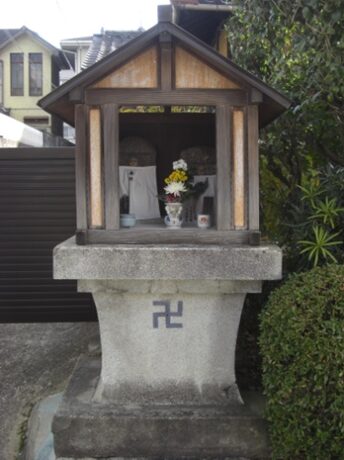 すぐ右角塀際に小ぶりな 子安地蔵と灯籠