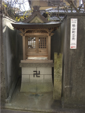 西へ進み100m余りで近鉄京都線の高架を潜る。左へ少し行くと近鉄桃山御陵前駅