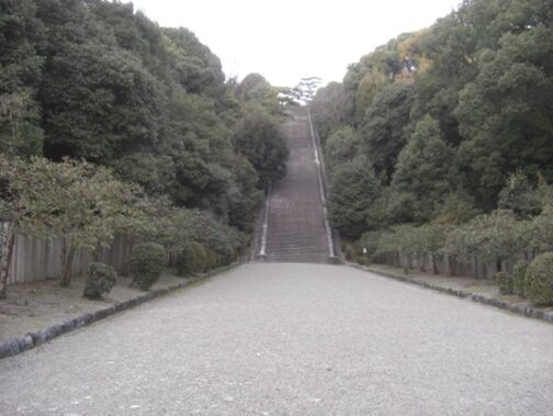 やがて左に 明治天皇伏見桃山陵への参道皇后の伏見桃山東陵