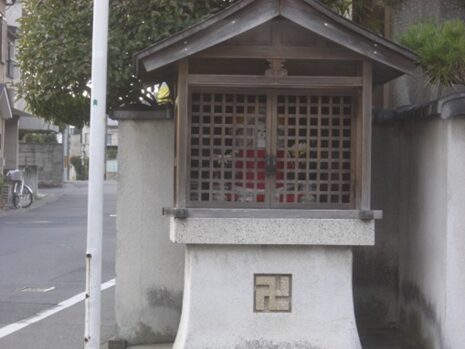 西羽束師川に架かる長権堂橋を渡った東北から南西斜めに交わる道は 久我畷道 との辻で久我畷道南西への道