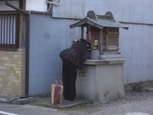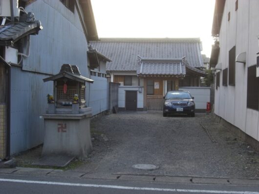 外環状線の新道は右にその北側を平行して、菱川の集落を進み十字路の所で左角に お堂