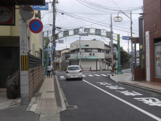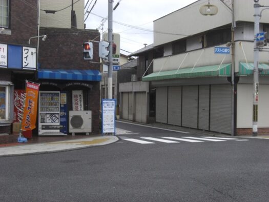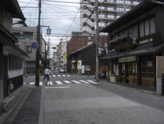 物集女街道を歩き終え、西国街道を南へ向日市商店街を南へ移動。やがて五辻交差点に出る、この辻が横大路街道の起点。
