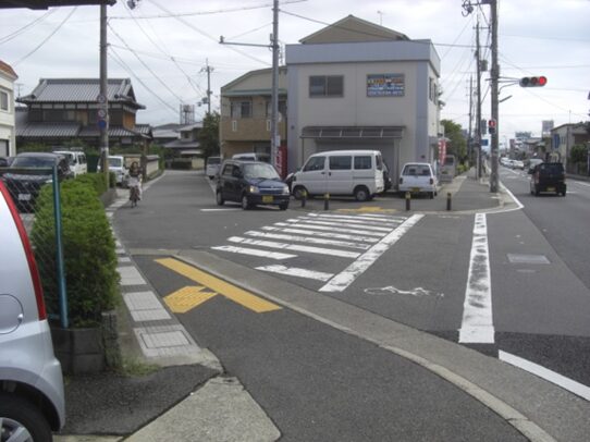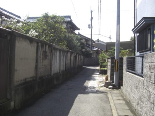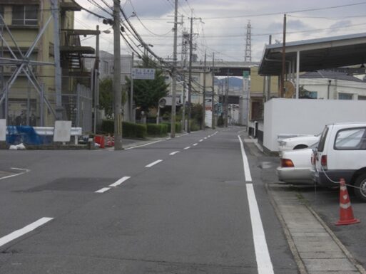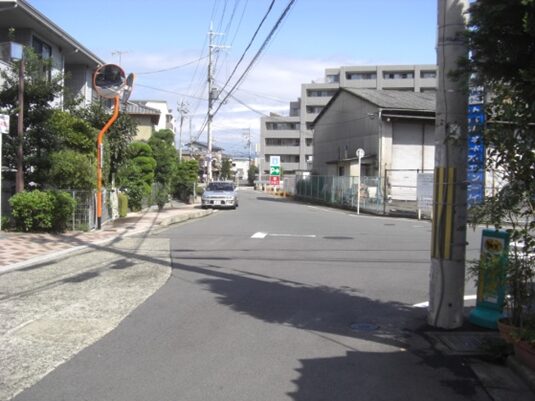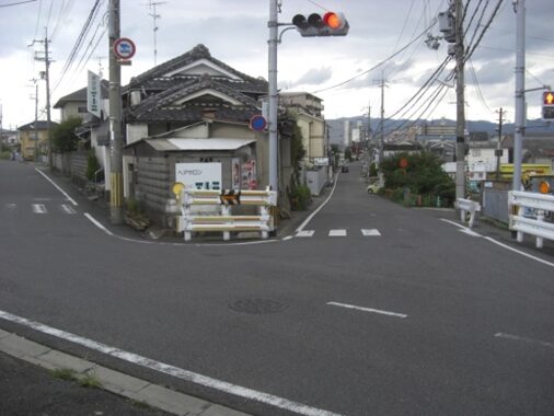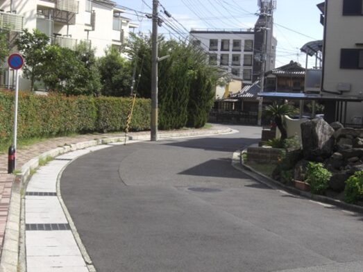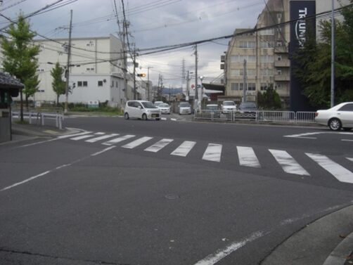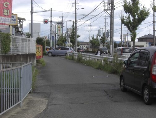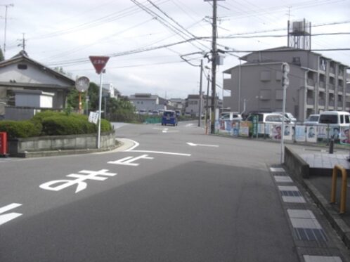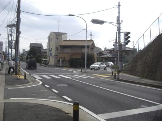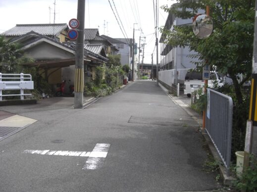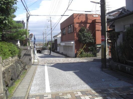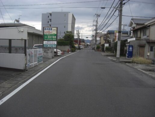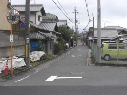 市営住宅内の道を通り真っ直ぐ東へ国道24号線にでて横断する