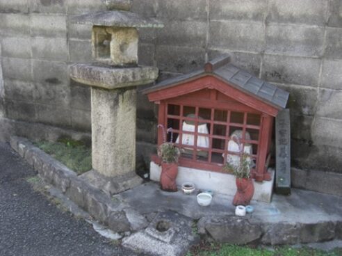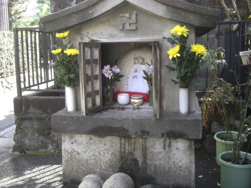 すぐ右角塀際に小ぶりな 子安地蔵と灯籠