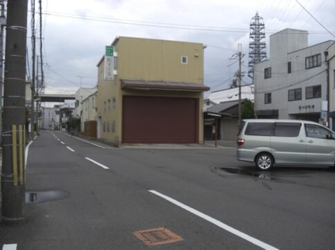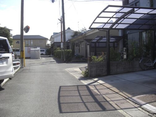 振り向くと向って右の道を歩いてきて右から合流してくる角に