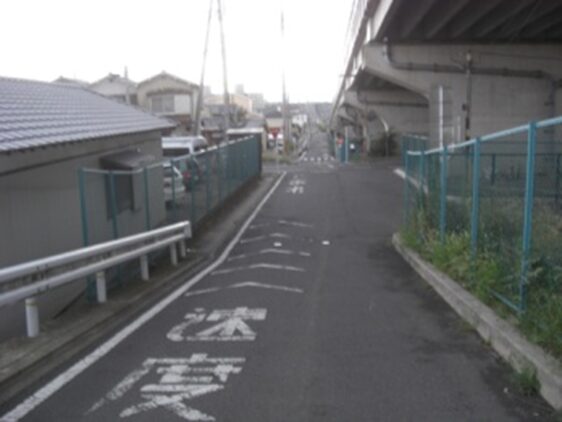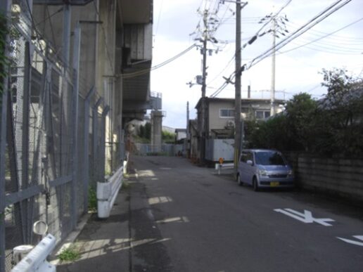 新幹線の高架を潜り左に折れ反対側の旧道に復する