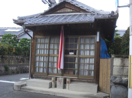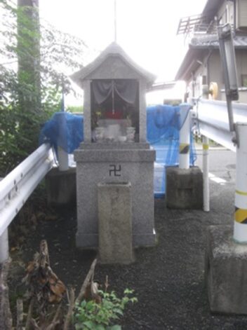 外環状線の新道は右にその北側を平行して、菱川の集落を進み十字路の所で左角に お堂